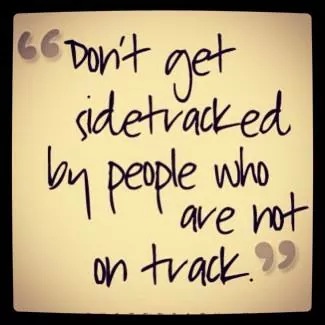 For those who may not be able to see it, it states “Don’t get sidetracked by people who are not on track”.